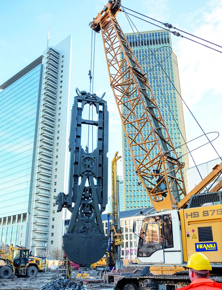 CA Immo beauftragte im August 2017 den Leistungsbereich Spezialtiefbau der PORR mit der Herstellung der kompletten Baugrube und der Tiefgründung des 190 m hohen Turms mit 49 Geschossen. Zu den zentralen Herausforderungen des Projekts zählten neben der Herstellung von bis zu 60 m langen suspensionsgestützten Großbohrpfählen vor allem die Baustellenlogistik. Denn das innerstädtische Grundstück befindet sich direkt zwischen dem Shopping-Center Skyline Plaza, der Frankfurter Messehalle 1 und dem Kongresszentrum Kap Europa.
