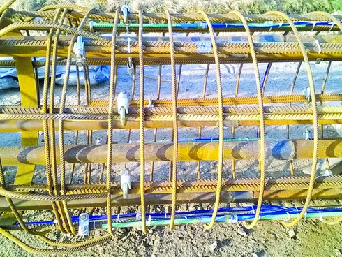 Das Bauvorhaben wird durch isg nun über mehrere Jahre messtechnisch begleitet. Dies umfasst Inklinometer-, Ankerkraft- und Erschütterungsmessungen während der Gründungsarbeiten sowie eine messtechnische Überwachung der kombinierten Pfahlplattengründung. Hierfür wurden insgesamt vier ca. 45 m lange Großbohrpfähle mit Messtechnik instrumentiert. Damit soll das Tragverhalten der kombinierten Pfahlplattengründung (KPP) über die Zeit erfasst werden. Seit Mitte Januar 2018 wurden die vier Messpfähle mit Druckkissen am Pfahlfuß sowie Dehnungsaufnehmern in zwei Messquerschnitten entlang des Schaftes bestückt und hergestellt. Im zweiten Quartal 2018 folgten dann Sohldruck und Porenwasserdruckgeber unterhalb der Sohlplatte sowie Druckkissen am Pfahlkopf.