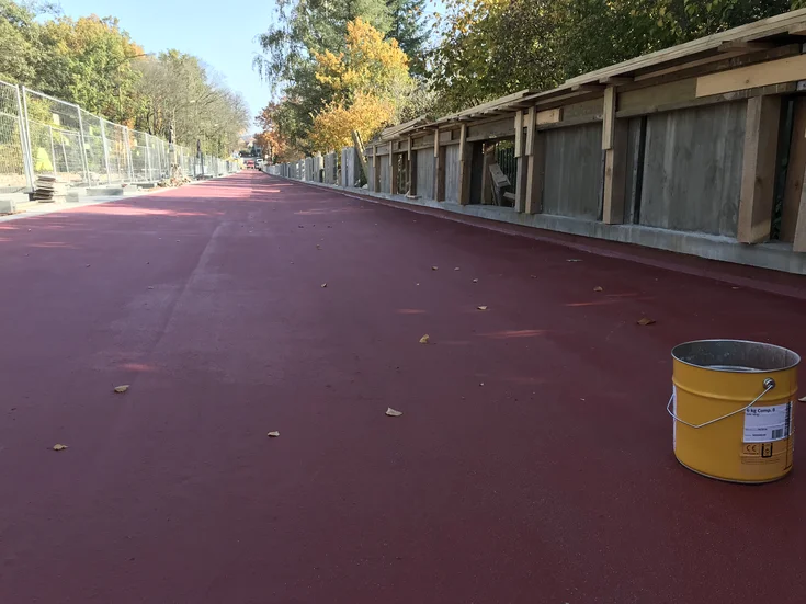Im Anschluss an die Errichtung des Abdichtungssystems wurde in Abständen von 10 m die Bordsteinentwässerung installiert, die ebenso wie die Wasserspeier aus Granit von der Denkmalschutzbehörde abgenommen werden mussten. Dasselbe galt für das auf Stahlbetonkappen aufgesetzte neue Stahlbetongeländer. Dafür wurde dem Denkmalamt auch ein Prototyp der Stahlstabfüllung vorgelegt. Zwischen den Bordsteinen errichtete die PORR eine dreilagige Asphaltfahrbahn. Der Gehsteigaufbau wurde mit einer Querneigung von 2,5 % als Natursteinpflasterung im Sandbett ausgeführt.