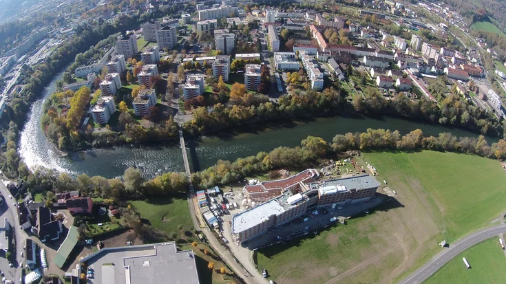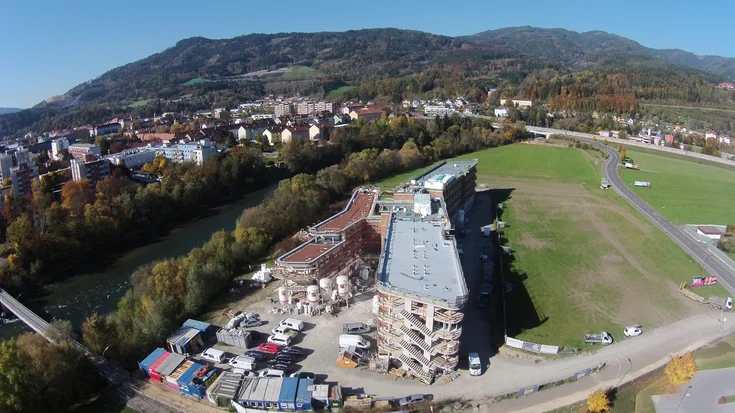 Noch vor zwei Jahren herrschte neben der berühmten Brandlwiese in Leoben gähnende Leere. Heute steht hier ein modernes Wohnheim für 280 Personen, das nicht nur mit einem DGNB-Zertifikat in Gold aufwarten kann, sondern auch architektonisch ein echtes Highlight der Montanstadt ist. Der Baukörper gliedert sich in zwei geschwungene Achsen. Die kürzere Achse über vier Geschosse orientiert sich im Westen zur Mur, der Hauptteil des Gebäudes im Osten erstreckt sich über fünf Geschosse. Den Mittelpunkt bildet ein großflächiges verglastes Atrium. Mit Rücksprüngen im Westbauteil sind attraktive Flachdachterrassen geschaffen worden. Die Idee für dieses Wohnheim gibt es bereits seit 2015. Nach zwei Jahren intensiver Planung und einem Verkauf des baureifen Projekts an die Rottenmanner Bau- und Siedlungsgenossenschaft konnte im März 2017 mit den Arbeiten begonnen werden. Als Generalunternehmerin fungierte die PORR Bau GmbH, Niederlassung Steiermark. Der Auftragswert liegt bei EUR 10,13 Mio.