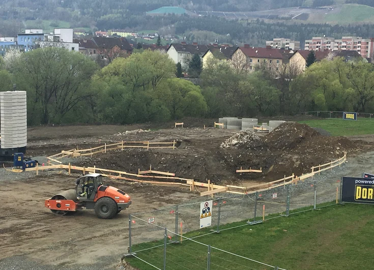Gleich zu Beginn der Arbeiten kam es durch die Bodenbeschaffenheit und gefundene Fliegerbomben zu Verzögerungen bei den Fundamentierungsarbeiten. Um eine ausreichende Tragfähigkeit des Bodens zu gewährleisten, wurde eine dynamische Impulsverdichtung des bestehenden Untergrunds durchgeführt. Dafür waren insgesamt 320 Verdichtungssäulen notwendig, die sich über ein von der Statikabteilung berechnetes Rasternetz unter der Flachgründung verteilen.
