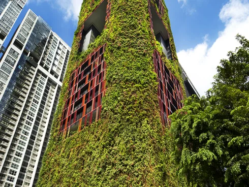 Das Oasia Hotel Downtown im Herzen von Singapurs Central Business District ragt mit seiner grünen Fassade wie ein gigantischer Mammutbaum in die Höhe. Geplant hat den Turm das Architekturbüro WOHA. WOHA ist von den Vorteilen ihrer bepflanzter Fassaden überzeugt: „Sie fördern biologische Vielfalt, verringern den städtischen Wärmeinseleffekt, stellen Schatten und Kühlung zur Verfügung, verbessern die Luftqualität, mildern die Härte des Stadtbildes, stellen Lebensräume für Wildtiere wieder her und fördern die Verbindung der Menschen mit der Natur.“ Doch nicht alle ambitioniert begrünten Neubauprojekte sind so professionell geplant und nachhaltig umgesetzt wie das Oasia Hotel von WOHA. In Chengdu in China stehen zum Beispiel acht üppig begrünte Wohntürme so gut wie leer, weil dort ein starkes Insektenproblem herrschen soll. Gerade im großvolumigen Hochbau sind die Gebäudebegrünung und Grünflächengestaltung eine eigene Fachdisziplin, die jedenfalls erfahrenen Unternehmen überlassen werden sollte. Apropos, die IAT Greenline der PORR kümmert sich bei der Garten- und Grünflächengestaltung um alles – von der Planung über die Ausführung bis zur Wartung. Horizontal und vertikal. Das Oasia Hotel Downtown ist jedenfalls ein beeindruckendes Beispiel für gelungene Fassadenbegrünung. Die Pflanzen verleihen nicht nur dem Stadtbild eine wohltuende Atmosphäre, sondern bieten den Besucherinnen und Besuchern auch im Inneren und auf den zahlreichen Terrassenflächen viele Wohlfühloasen inmitten der Großstadt.