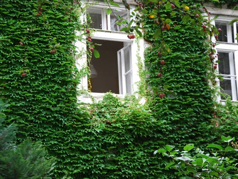 In Metropolen wie Paris, Budapest und Wien sind noch viele Gebäude aus der sogenannten Gründerzeit rund um den Beginn des 20. Jahrhunderts erhalten. In Zeiten der Industrialisierung wurde der Zuzug in die Städte immer stärker, es folgte ein Bauboom. Die Fassaden aus der Gründerzeit werden zum Teil schon seit mehreren Jahrzehnten von Pflanzen bewuchert und dadurch sogar vor aggressiven Schadstoffen in der Luft geschützt. Andere wurden in den vergangenen Jahren mit Bepflanzung aufgerüstet. Auch an Einfamilienhäusern – ob auf einer spanischen Finca, der italienischen Villa oder einem historischen Bauernhaus – sind grüne Fassaden ein Gewinn. Bestandsgebäude können nicht mit bodengebundenen Pflanzen begrünt werden, wenn Gehsteige oder Straßen den Boden entlang der Fassade versiegeln. Auch die Befestigung von Pflanzen direkt an der Wand kann bei alten Häusern schwierig sein, da alte Ziegel manchmal unberechenbar sind. Die Wände von Fachwerkhäusern etwa bestehen zu einem großen Teil aus Lehm und sind nicht die tragfähigsten. Dann setzt man troggebundene Varianten ein. Die Pflanzen wachsen also in Trögen oder Töpfen. Die mit Efeu und Co berankten Altbau-Fassaden sind in jedem Fall wertvoller Lebensraum und Nahrungsquelle für Insekten. Und: Sie sehen einfach gut aus.