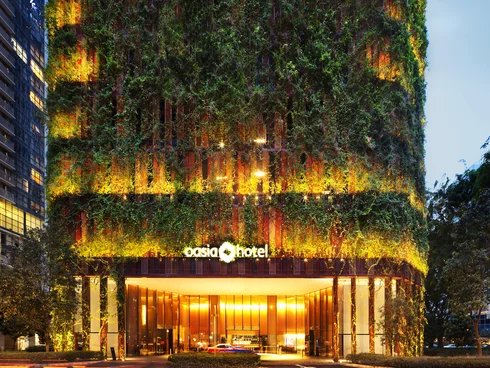 Die Häuser der Parkroyal Collection Hotels sind mittlerweile schon fast Ikonen der modernen, urbanen Fassadenbegrünung. Sie haben bereits zahlreiche Auszeichnungen erhalten. Das Architekturkonzept umfasst Aufenthaltsqualität pur – vom Parkdeck bis ins Hotelzimmer. In Singapur wuchern zum Beispiel grüne Pflanzen von der Fassade des Parkhauses, als wollen sie sich Raum zurückerobern. Im Parkroyal in Kuala Lumpur bevölkern ganze Bäume die Balkone und Terrassen und lassen die Fassade atmen. Und im Parkroyal Collection Marina Bay in Singapur wurden auf 15.000 Quadratmetern insgesamt 2.400 Pflanzen aus mehr als 60 Arten verteilt. Am Dach wird außerdem auf 150 Quadratmetern das hauseigene Obst und Gemüse angebaut. Die Hotels sind Vorzeigebeispiele für zeitgenössische, grüne Architektur.