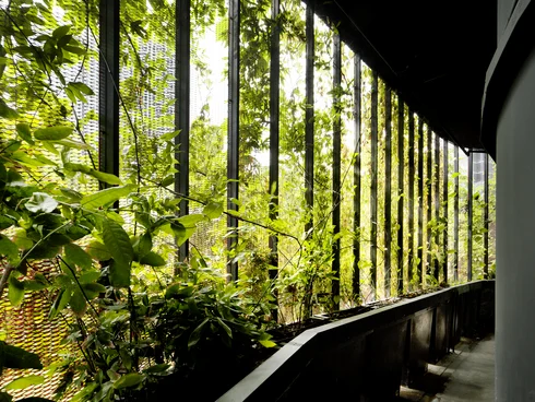 VTN Architects hat mit seinen Houses for Trees eine Reihe von Wohnprojekten mit einem ehrgeizigen Ziel gestartet: Grünflächen zurück in die Stadt zu bringen und „so viel Grün zu gestalten, wie in der ursprünglichen Landschaft vorhanden war, um den Menschen in der Stadt ein gesünderes Leben zu ermöglichen.“ Das Hauptkonzept dieser Häuser ist es, Raum zu schaffen, in dem Menschen in Städten wie in einem Wald leben können. Ein nachhaltiges Zuhause, „das in Harmonie mit der Umgebung existiert und versucht, Teil seiner Landschaft zu werden.“ Dabei sind Innen- und Halbaußenräume mit zahlreichen Pflanzen gefüllt. Tiefe Schatten als Teil der doppelschaligen grünen Fassade schützen gegen das heiße tropische Klima und vor Lärm. Die Bewohnerinnen und Bewohner können bei ihren täglichen Aktivitäten immer die Frische des Grüns spüren.