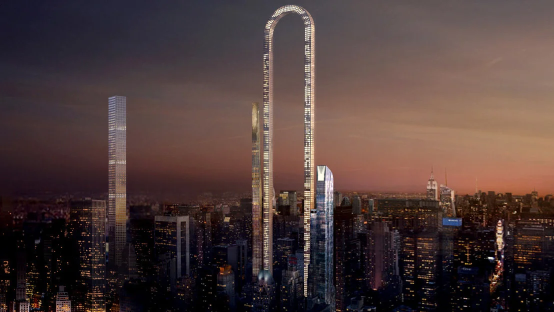 Dieser futuristische Wolkenkratzer ist U-förmig und soll das lĂ€ngste GebĂ€ude der Welt werden, falls es jemals gebaut wird: The Big Bend ist ein Entwurf fĂŒr die Billionairesâ Row in Midtown Manhattan. Entworfen hat ihn 2017 das New Yorker ArchitekturbĂŒro Oiio Studio. Mit einer Höhe von 610 m wĂ€re es auch das höchste GebĂ€ude der westlichen HemisphĂ€re. Die geplante LĂ€nge der Fassade betrĂ€gt satte 1.220 m, die sich ĂŒber ihre NachbargebĂ€ude beugt und die Form eines U-Hakens hat. Derzeit ist The Big Bend allerdings nicht mehr als ein Vorschlag. Einen konkreten Baustart oder Finanziers sind nicht bekannt.