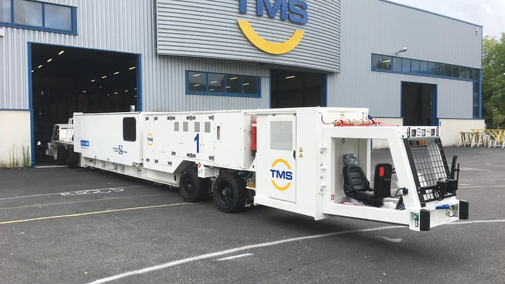 The MSVs can transport all the tunnel segments needed for one stroke in a single load. A cabin for up to four people is permanently installed and an additional cabin for up to twelve people can be connected for shift changes. An additional loading platform is provided. The MSVs are 17.15m long, 1.26m wide and 1.90m high (incl. load). A loaded vehicle can be driven at up to 15km/h.