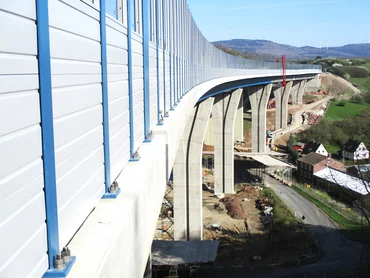 At the edge of Dillenburg, PORR Deutschland GmbH is constructing a 388m long bridge over the valley which will completely replace the existing bridge.