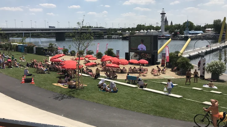 In the 1980s, the Danube River was regulated and the resulting spoil was built up to form the Danube Island. This created the New Danube, which was to become a popular local resort for Vienna residents. Over time, the “Copa Cagrana”, a popular area, came into being in the immediate vicinity of the Reichsbrücke bridge. The City of Vienna is now restructuring and modernising this section, which has seen better days, in three construction stages. An EU-wide architectural competition was held, and the winning project features a redesign of the shore which, in addition to a