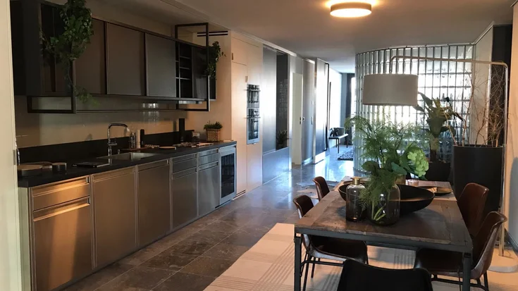 In contrast to sites B and D, on site F PORR also completed the internal construction and installed interior fittings. This work involved apartments that had been planned in detail by the architects. In fact, they even designed some elements of the interior fittings themselves, and commissioned small-series production after consulting with the building owners. The commissioned elements include a suspended metal kitchen element that serves as a wall cupboard, a suspended mirror cabinet in the wet rooms, and a base cabinet to fit under the washbasins. Glass-brick lamps, specially developed for this project, have been installed in the entrance areas to the residential towers and in the lobbies outside the lifts on each floor.