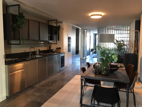 The materials used in the façade have also been used in the building’s interior. Glass brick elements have been integrated, particularly in wet rooms. In addition, the stone used in the façade has been used again as a floor covering. The architects also integrated clay elements in this project, which has been used as ceiling plaster, with a rather more durable fine lime plaster applied to the walls. The clay acts as a buffer to regulate air humidity in the apartments and ensures a pleasant indoor climate.