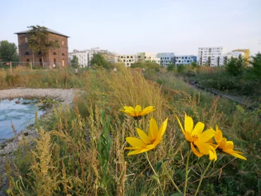 Freie Mitte is being realised in stages. And the buildings on the Nordbahnhof site will also be built in stages. Around 10,000 apartments and space for 20,000 office workers are planned by 2026, including follow-up facilities. The natural surroundings and the buildings complement each other perfectly. After all, a park like this is only possible thanks to multiple construction measures, summarised in a very extensive conservation order. These include, for example, roosts for bats built into the facades, nesting boxes for kestrels on the buildings, as well as areas for sand lizards and green toads to rest and reproduce.