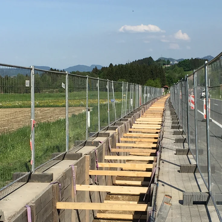 Am 17. April startete die PORR mit den Bauarbeiten von Villach in Richtung Arnoldstein. Die Arbeiten wurden abschnittsweise und teilweise gleichzeitig mit fünf Vortriebspartien durchgeführt, die jeweils aus zwei Bauarbeitern, zwei Baggern und zwei LKW bestanden. Für die gesamte Bauzeit mussten für eine Trassenlänge von 3.000 m Bauzäune und Pölzungsmaterial zur Sicherung und Abstützung der Künette vorgehalten werden. Für die Pölzung wurden Holzverbau-Elemente 400/180/5 cm mit Aufsetzern 5/16 cm bzw. 8/16 cm und Sprenger 10/10 cm gefertigt, eingesetzt und mit statischem Nachweis belegt.