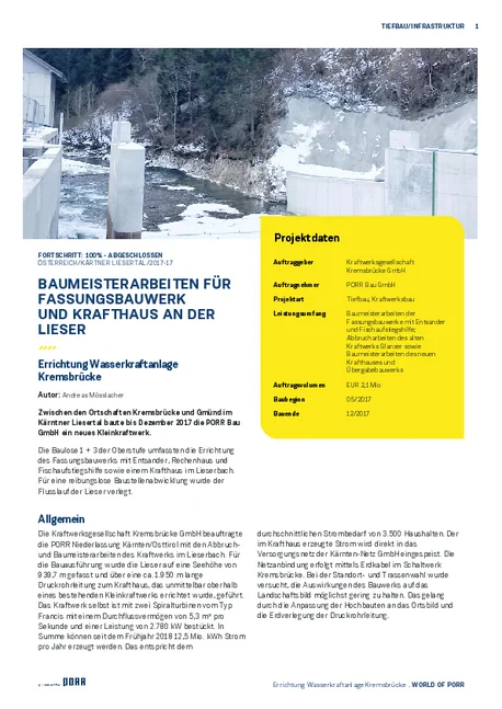 Errichtung Wasserkraftanlage Kremsbrücke
