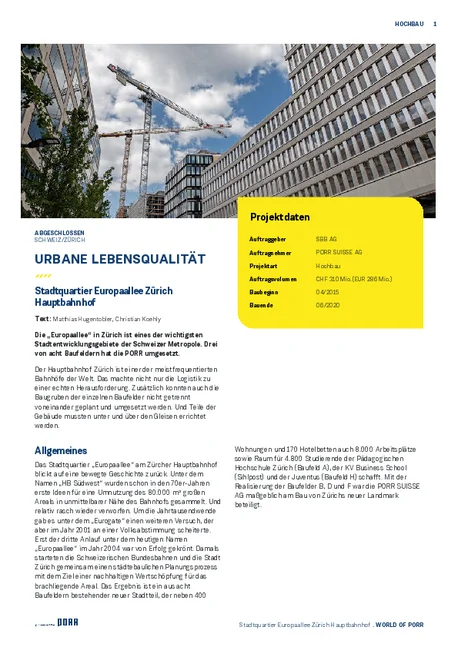 Stadtquartier Europaallee Zürich Hauptbahnhof