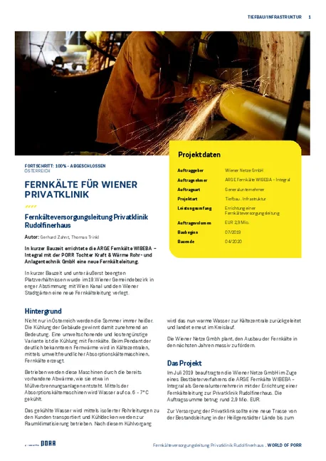 Fernkälteversorgungsleitung Privatklinik Rudolfinerhaus