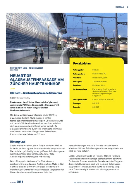 HB Nord – Glasbausteinfassade Gleisarena