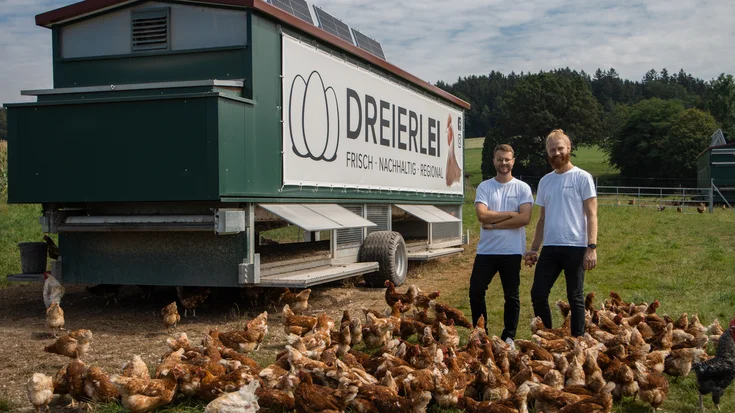 David: Genau. Im Frühjahr 2020 haben wir – gemeinsam mit unserem Bruder Simon – Dreierlei ins Leben gerufen: Wir haben Legehennen in Freilandhaltung, genauer gesagt in mobilen Hühnerställen. Wir legen also besonders viel Wert auf frische, nachhaltige und regionale Produktion – das Tierwohl steht bei uns an erster Stelle.