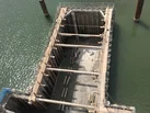 Alongside the gate chamber, a two-storey operations building and a pumping station were constructed; the latter can regulate the water level in the inner harbour in the event of flooding. The gate itself is a movable steel sliding gate approx. 30m long, 15m high and weighing around 250 tonnes.