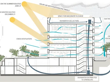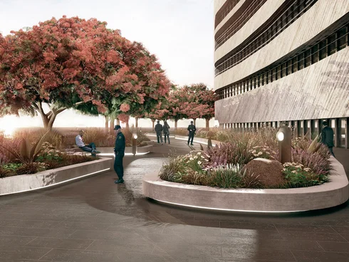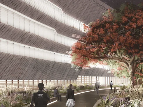 Der Innengarten mit seiner großen Artenvielfalt und die über das gesamte Gebäude verteilten Ruhezonen werden dazu beitragen, dass die Mitarbeitenden den extremen Stress, den ihr Beruf üblicherweise mit sich bringt, abbauen können. Es ist daran gedacht, die Flächen mit Bromelien, Rosmarin, Jasmin, niedrigen Nadelbäumen, Orangenbäumen, Jungfernhaar und Farnen zu bepflanzen. Abgerundet werden sie mit bunten Zonen mit mehrfarbig blühenden Blumen, einer Zone mit niedrigen Sträuchern und einer mit vertikalen Gärten. Der Innenhof wird auch ausreichend Raum für Begegnung, Erholung, Freizeit und Sport bieten. Das Gebäude verfügt außerdem über eine 2,80 m breite und 300 m lange Aussparung, die die drei oberen Stockwerke mit Licht und natürlicher Belüftung versorgt. Die mit dem Haupthof im Freien verbundene Rampe erlaubt die Nutzung dieser zur sportlichen Ertüchtigung und Erbauung. Sie kann aber auch für sicherheitstechnische Übungen genutzt werden.