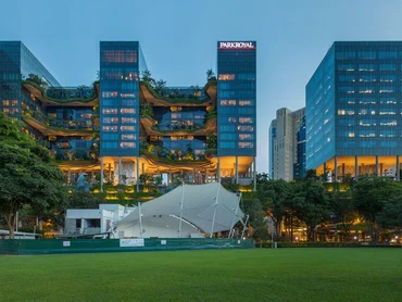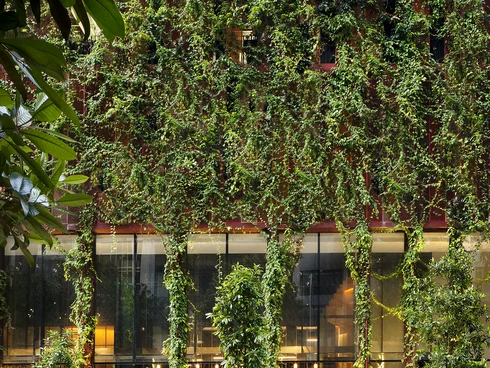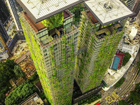 Die Häuser der Parkroyal Collection Hotels sind mittlerweile schon fast Ikonen der modernen, urbanen Fassadenbegrünung. Sie haben bereits zahlreiche Auszeichnungen erhalten. Das Architekturkonzept umfasst Aufenthaltsqualität pur – vom Parkdeck bis ins Hotelzimmer. In Singapur wuchern zum Beispiel grüne Pflanzen von der Fassade des Parkhauses, als wollen sie sich Raum zurückerobern. Im Parkroyal in Kuala Lumpur bevölkern ganze Bäume die Balkone und Terrassen und lassen die Fassade atmen. Und im Parkroyal Collection Marina Bay in Singapur wurden auf 15.000 Quadratmetern insgesamt 2.400 Pflanzen aus mehr als 60 Arten verteilt. Am Dach wird außerdem auf 150 Quadratmetern das hauseigene Obst und Gemüse angebaut. Die Hotels sind Vorzeigebeispiele für zeitgenössische, grüne Architektur.