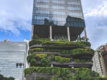 Das Oasia Hotel Downtown im Herzen von Singapurs Central Business District ragt mit seiner grünen Fassade wie ein gigantischer Mammutbaum in die Höhe. Geplant hat den Turm das Architekturbüro WOHA. WOHA ist von den Vorteilen ihrer bepflanzter Fassaden überzeugt: „Sie fördern biologische Vielfalt, verringern den städtischen Wärmeinseleffekt, stellen Schatten und Kühlung zur Verfügung, verbessern die Luftqualität, mildern die Härte des Stadtbildes, stellen Lebensräume für Wildtiere wieder her und fördern die Verbindung der Menschen mit der Natur.“ Doch nicht alle ambitioniert begrünten Neubauprojekte sind so professionell geplant und nachhaltig umgesetzt wie das Oasia Hotel von WOHA. In Chengdu in China stehen zum Beispiel acht üppig begrünte Wohntürme so gut wie leer, weil dort ein starkes Insektenproblem herrschen soll. Gerade im großvolumigen Hochbau sind die Gebäudebegrünung und Grünflächengestaltung eine eigene Fachdisziplin, die jedenfalls erfahrenen Unternehmen überlassen werden sollte. Apropos, die IAT Greenline der PORR kümmert sich bei der Garten- und Grünflächengestaltung um alles – von der Planung über die Ausführung bis zur Wartung. Horizontal und vertikal. Das Oasia Hotel Downtown ist jedenfalls ein beeindruckendes Beispiel für gelungene Fassadenbegrünung. Die Pflanzen verleihen nicht nur dem Stadtbild eine wohltuende Atmosphäre, sondern bieten den Besucherinnen und Besuchern auch im Inneren und auf den zahlreichen Terrassenflächen viele Wohlfühloasen inmitten der Großstadt.