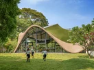 Die Bloomingdale International School in Vijayawada ist die einzige internationale Schule im Bundesstaat Andhra Pradesh, Indien. Das Erweiterungsgebäude der Vorschule von AndBlack Design Studio soll die gebaute Form, Landschaft und Innenräume zu einem einzigen Element zusammenführen. Eine unkonventionelle räumliche Organisation, moderne Technologien und robuste, nachhaltige Materialien prägen den Neubau. Anstelle von kleinen, rechteckigen, dunklen Klassenräumen haben die Architekten fließende, miteinander verbundene Räume geplant, die freie Bewegung und Interaktion fördern. Anstatt auf den typisch bunten Farbeinsatz für Vorschulkinder zu setzen, legt das Design den Schwerpunkt auf die Form, die durch die Architektur des Gebäudes Verspieltheit vermitteln soll. Das wellenförmige, begrünte Dach mit Glaseinsätzen und große Glasflächen in der Fassade lassen Draußen und Drinnen verschmelzen. Das Gebäude wurde 2024 fertiggestellt, die begrünten Dächer machen die Schule bereits zu einem Wahrzeichen der Gegend.